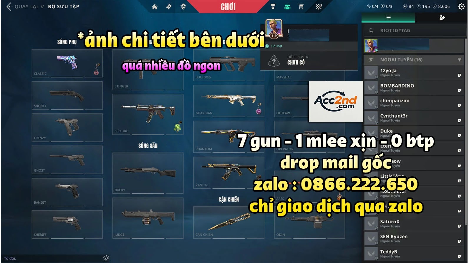 - LƯU Ý: Cọc giữ acc và mua góp chỉ áp dụng giá acc 500k trở lên.