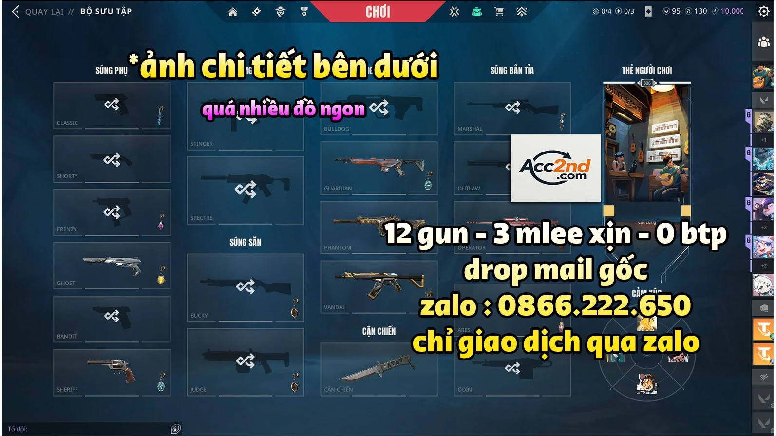- CỌC GIỮ ACC từ 10% giá trị acc cần cọc (liên hệ zalo shop để hỗ trợ).