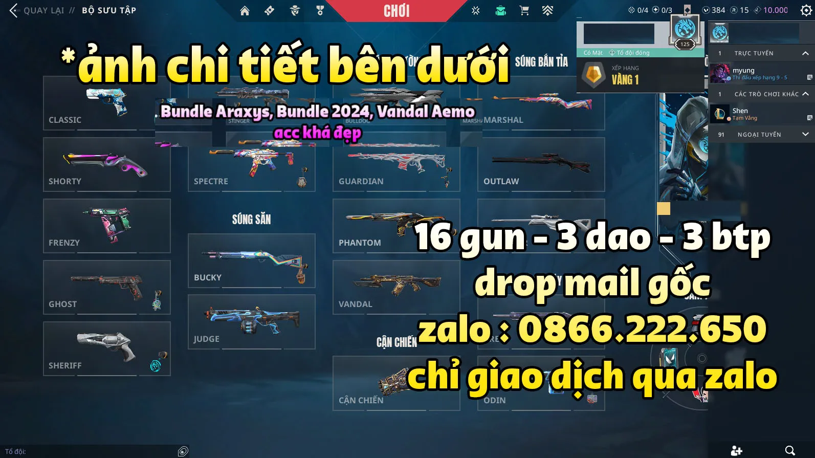 - CỌC GIỮ ACC từ 10% giá trị acc cần cọc (liên hệ zalo shop để hỗ trợ).