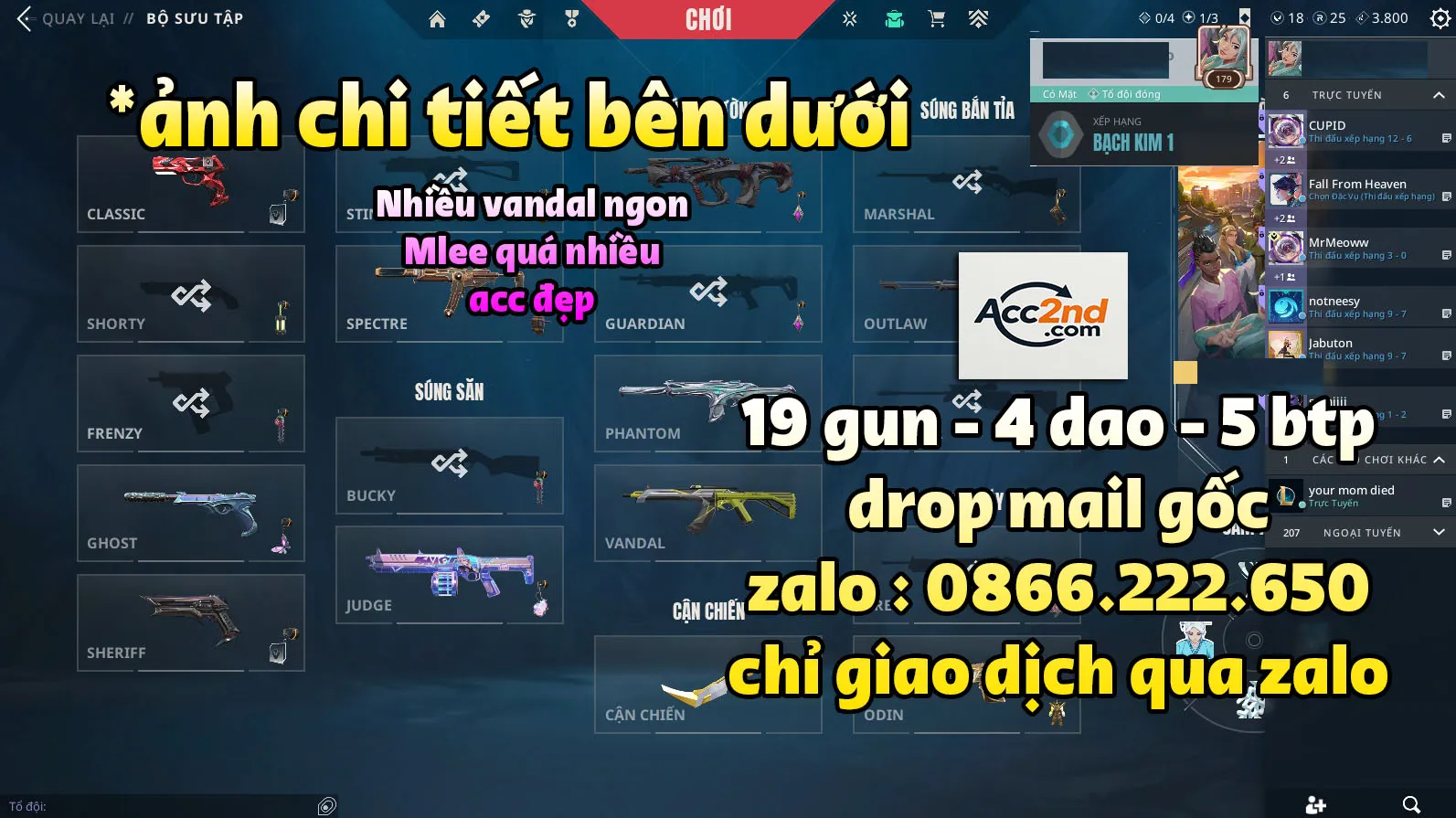 - CỌC GIỮ ACC từ 10% giá trị acc cần cọc (liên hệ zalo shop để hỗ trợ).
