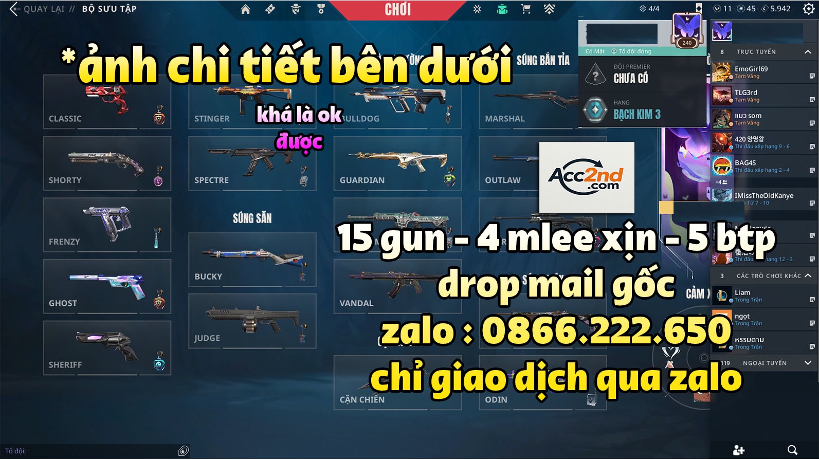 - LƯU Ý: Cọc giữ acc và mua góp chỉ áp dụng giá acc 500k trở lên.