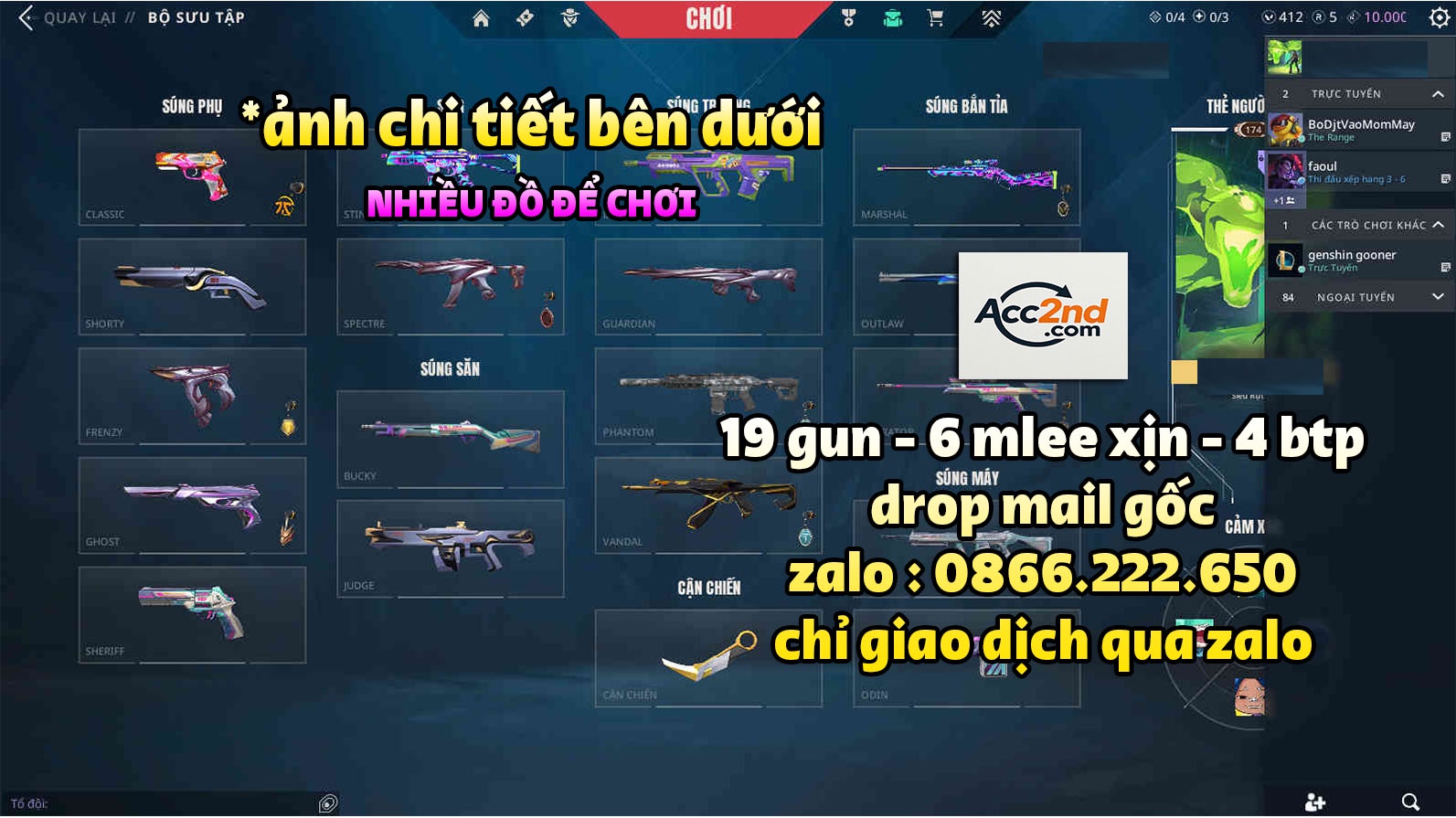 - CỌC GIỮ ACC từ 10% giá trị acc cần cọc (liên hệ zalo shop để hỗ trợ).