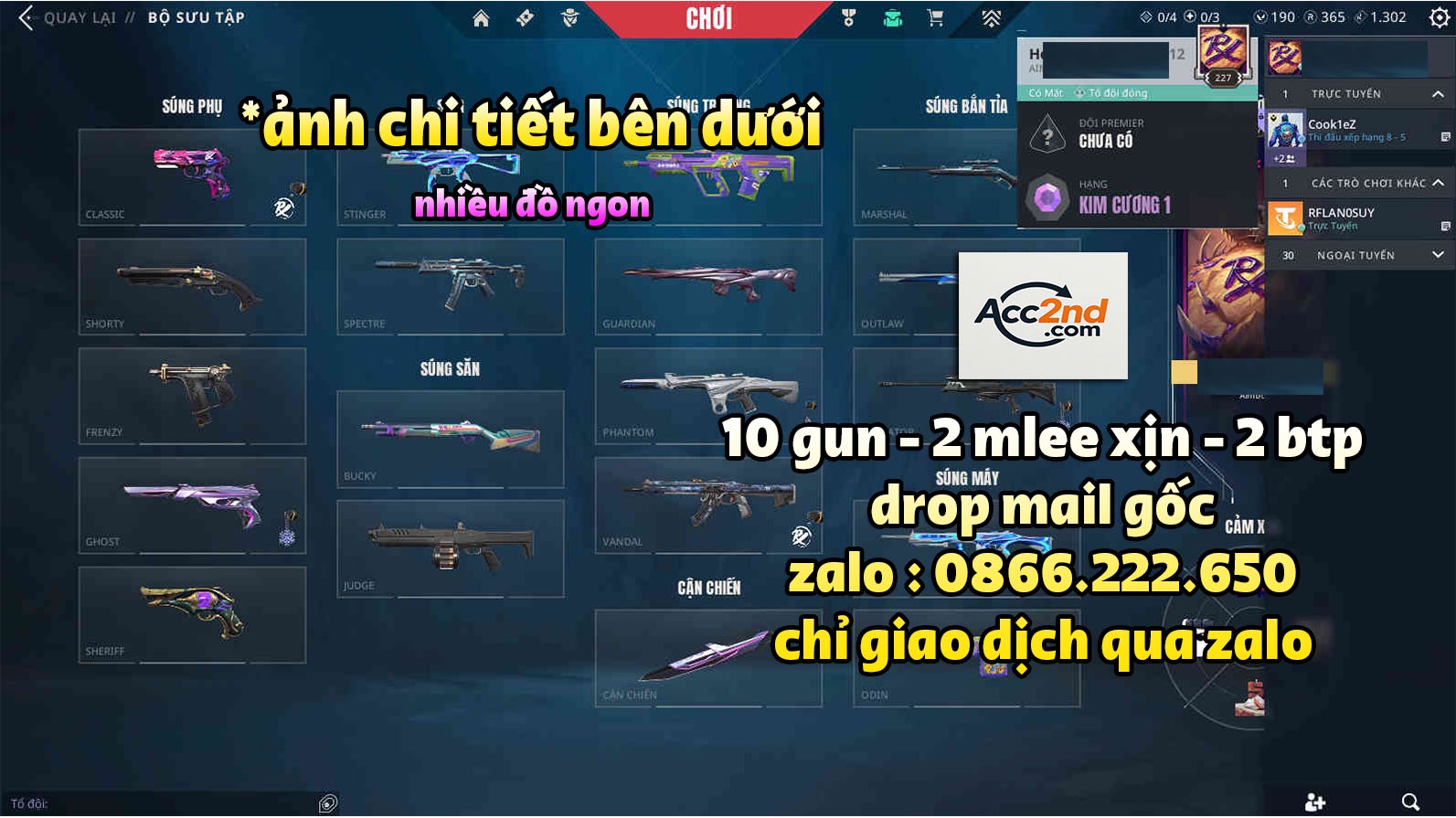 - LƯU Ý: Cọc giữ acc và mua góp chỉ áp dụng giá acc 500k trở lên.