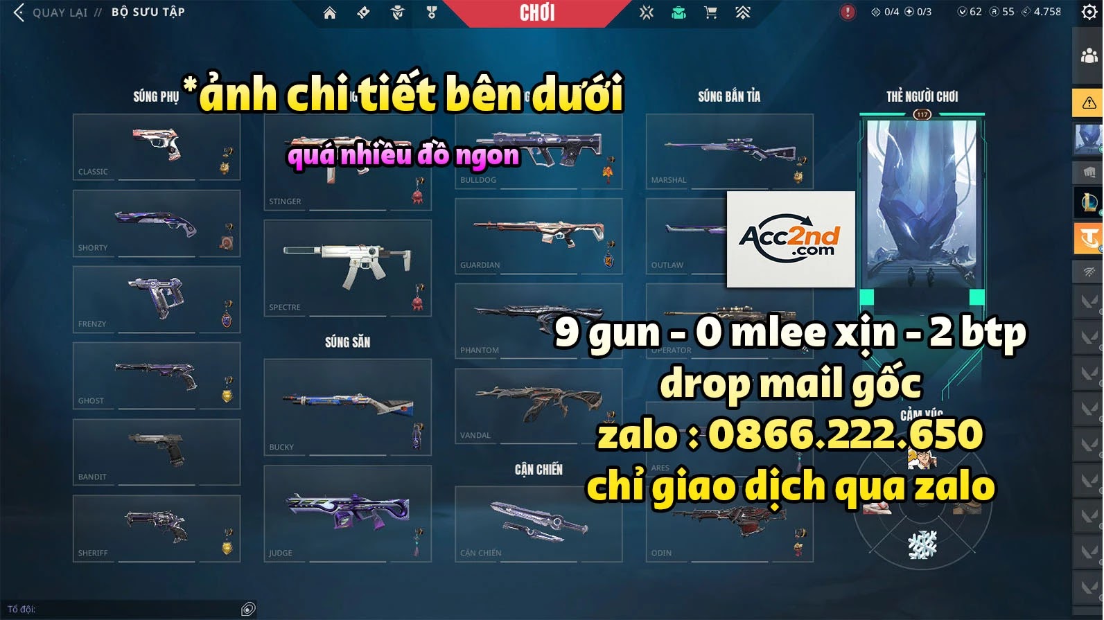 - CỌC GIỮ ACC từ 10% giá trị acc cần cọc (liên hệ zalo shop để hỗ trợ).